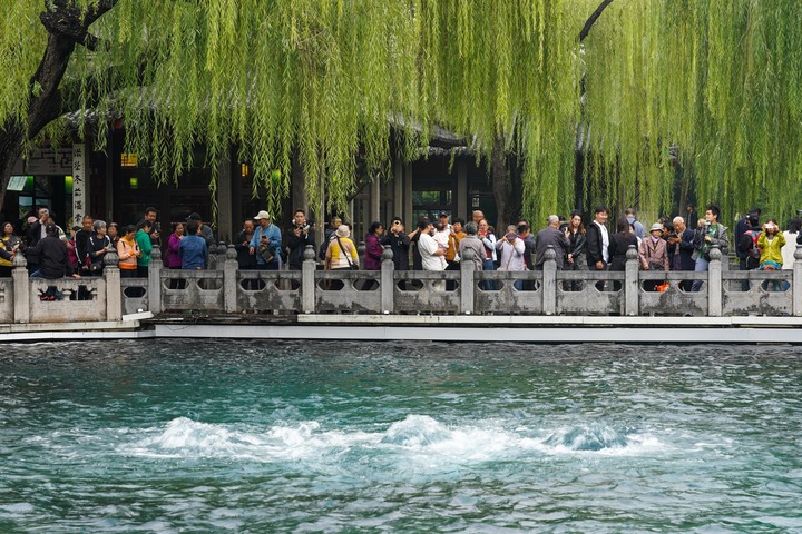济南泉水喷涌引客来。新华社记者朱峥摄