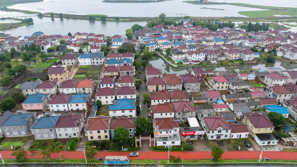这是2025年10月17日拍摄的江苏省泰州市兴化市千垛镇东罗村(无人机照片)。新华社发(周社根 摄)